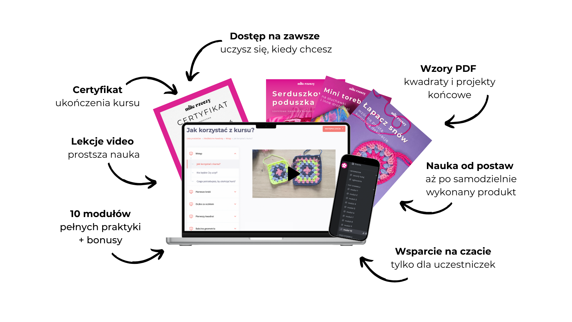 🧶 Uczysz się kiedy chcesz. Masz dostęp na zawsze.